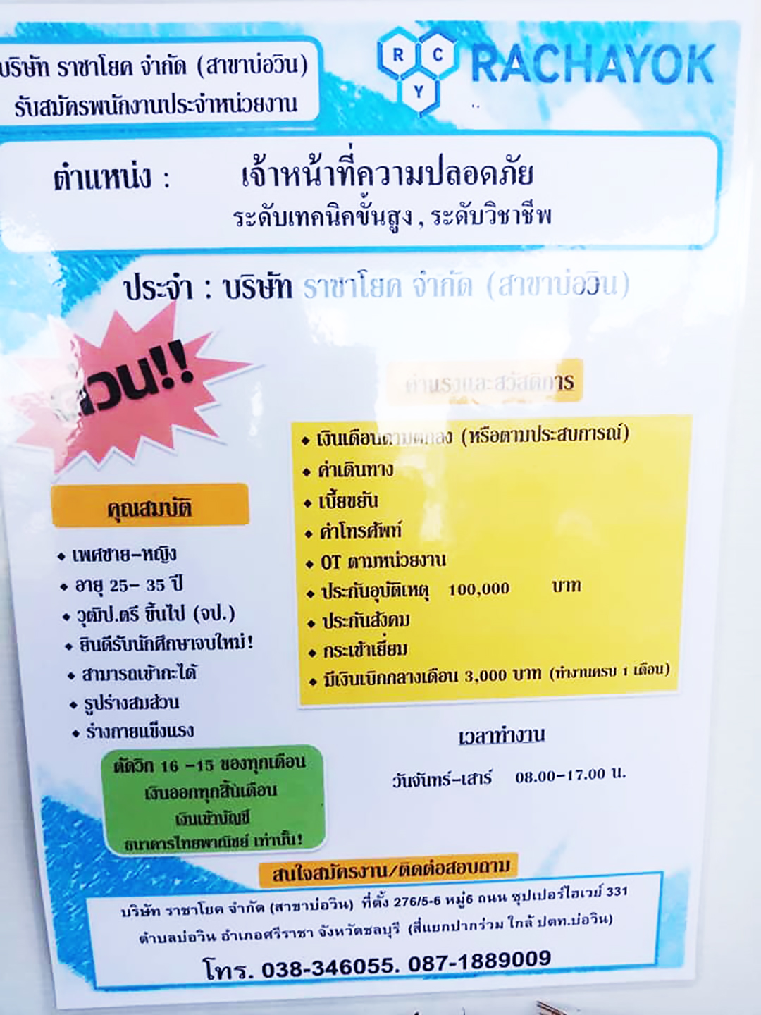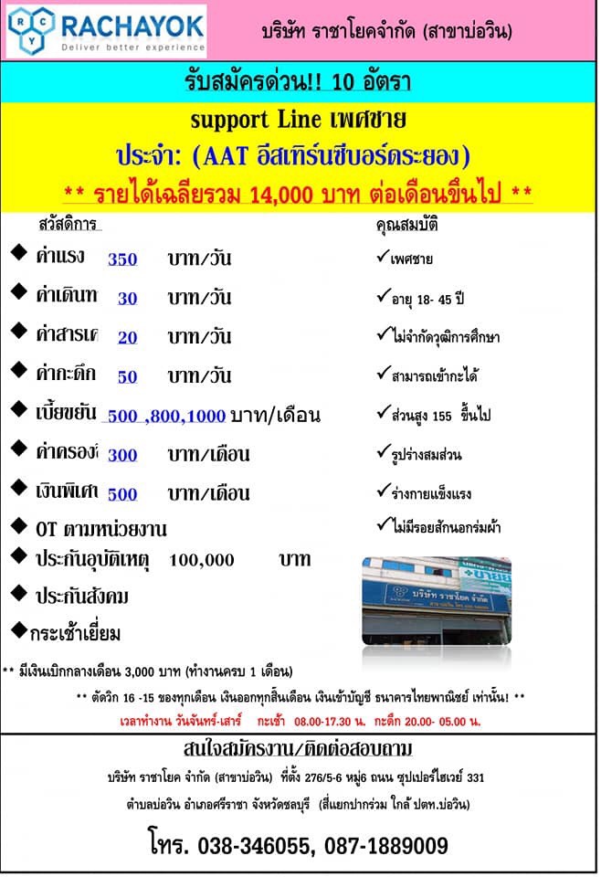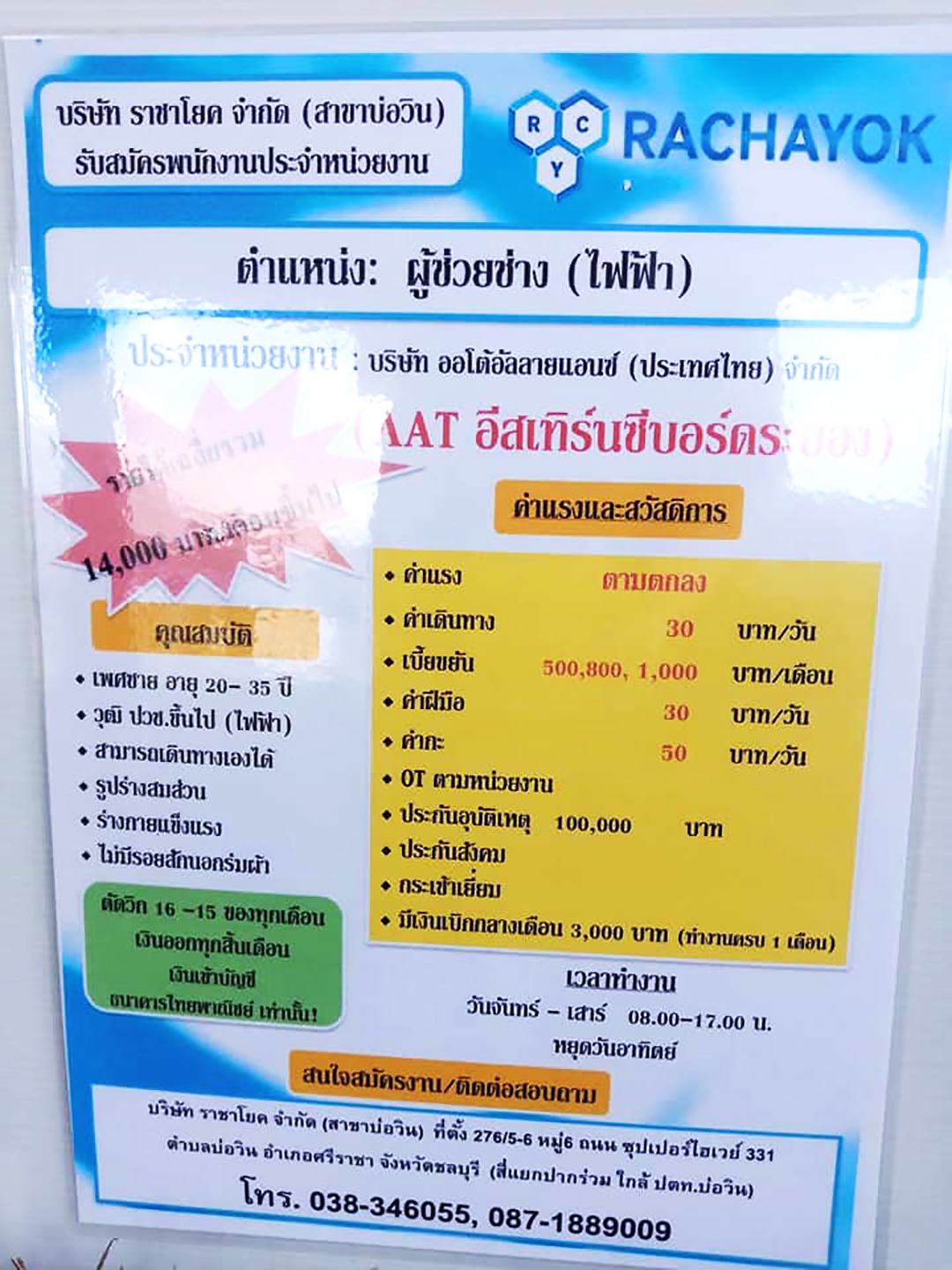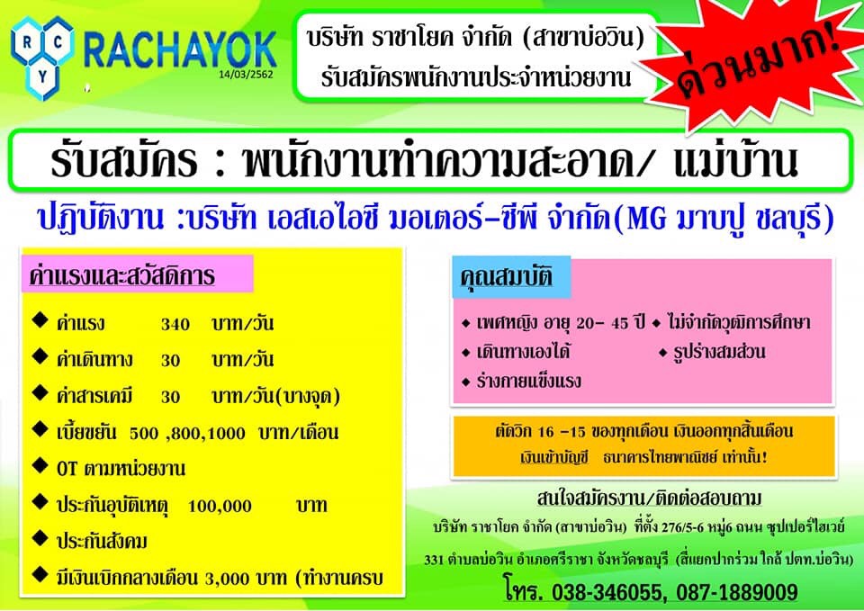 เปิดรับสมัครงานชลบุรี-ระยอง เงินดี โบนัสสูง