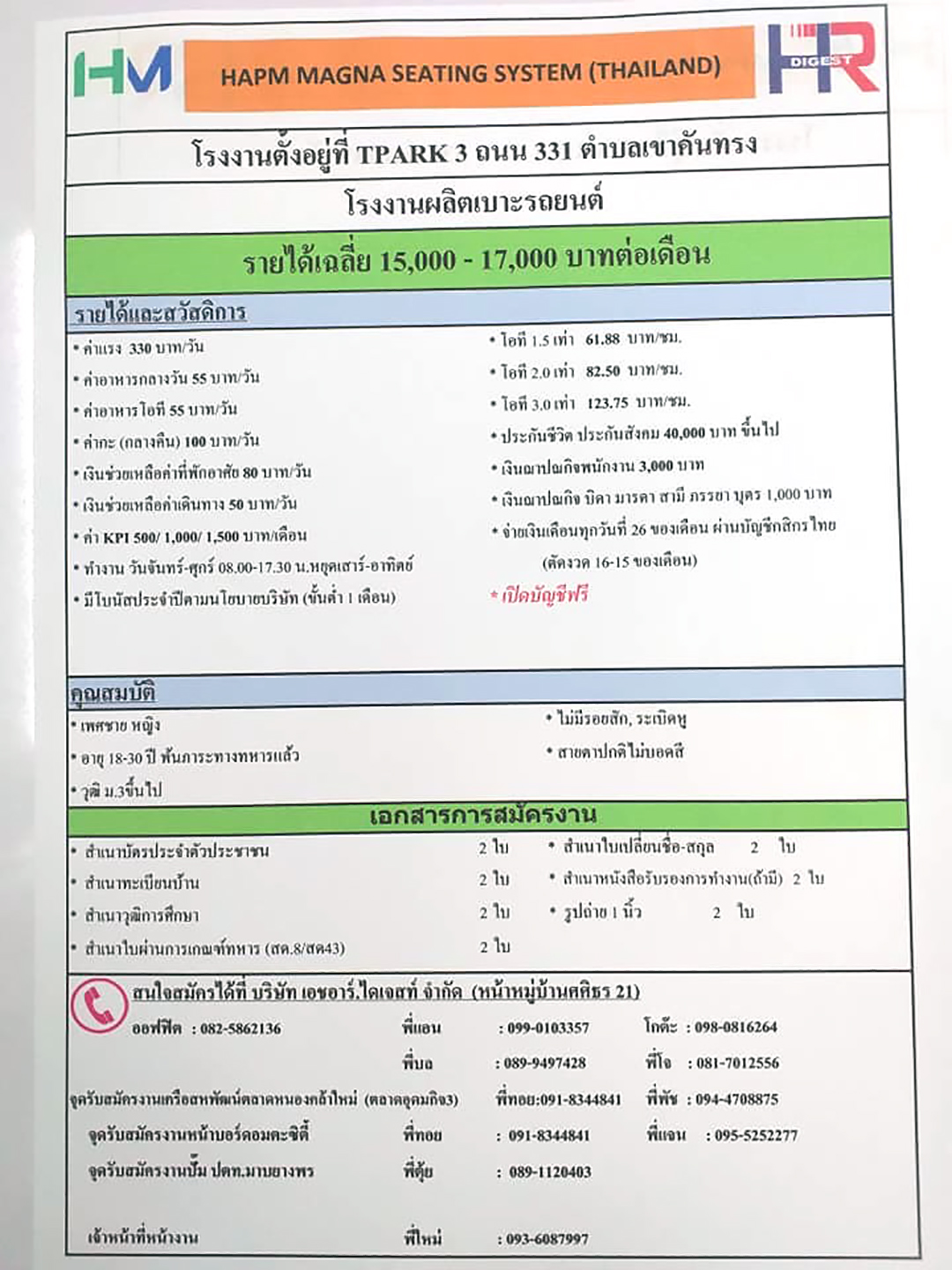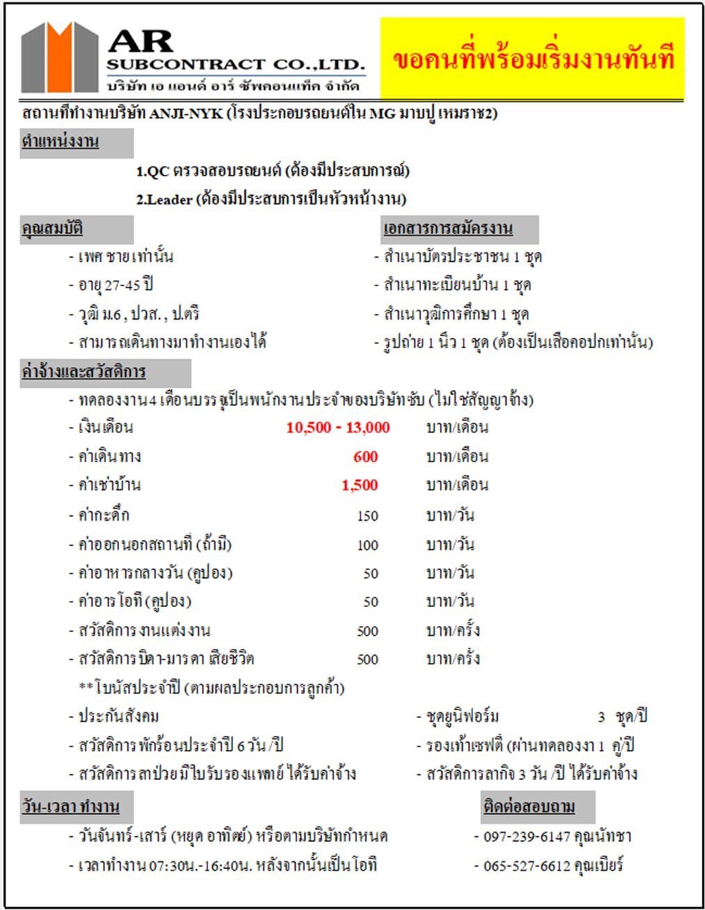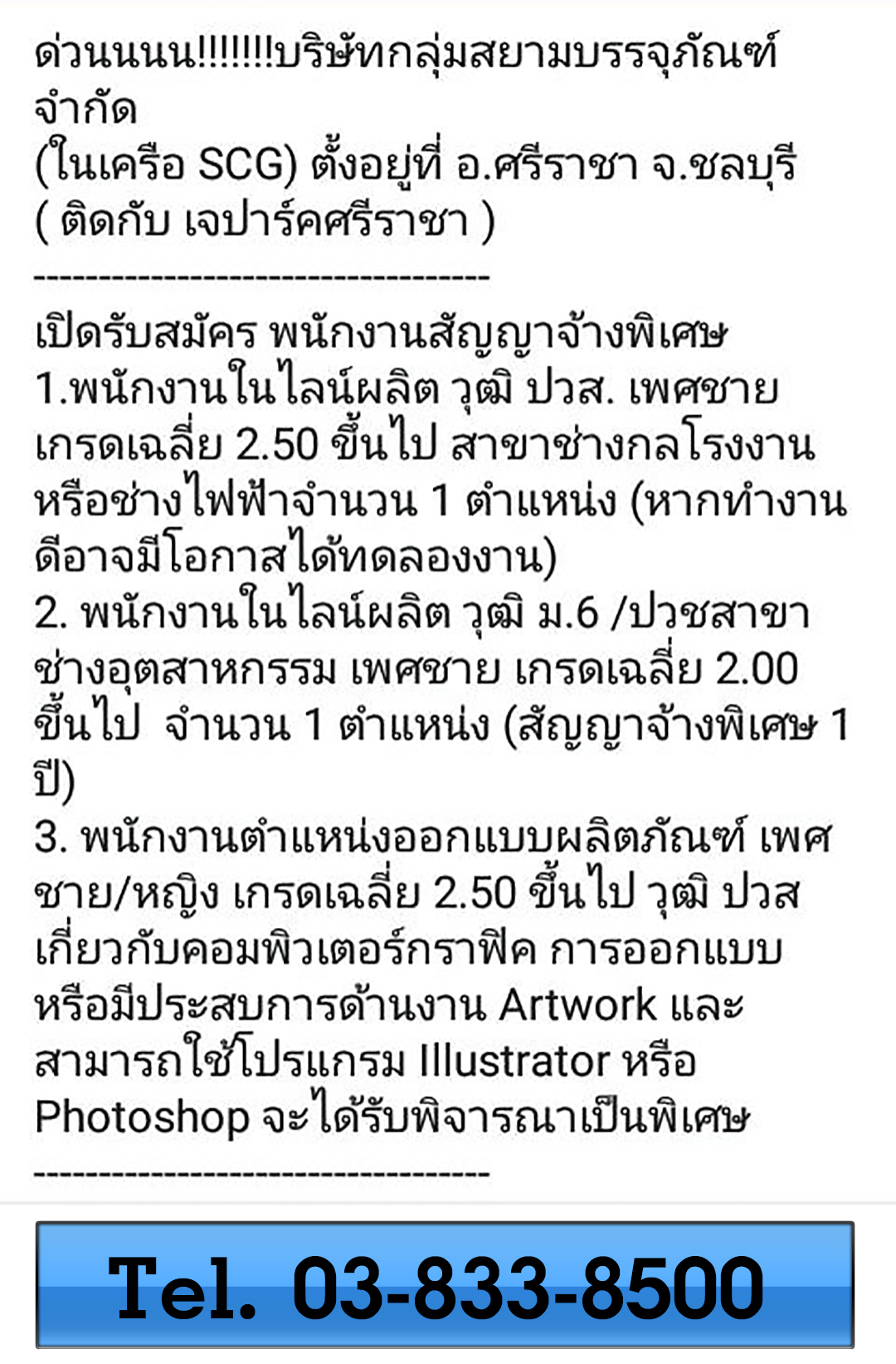 เปิดรับสมัครงานชลบุรี-ระยอง เงินดี โบนัสสูง
